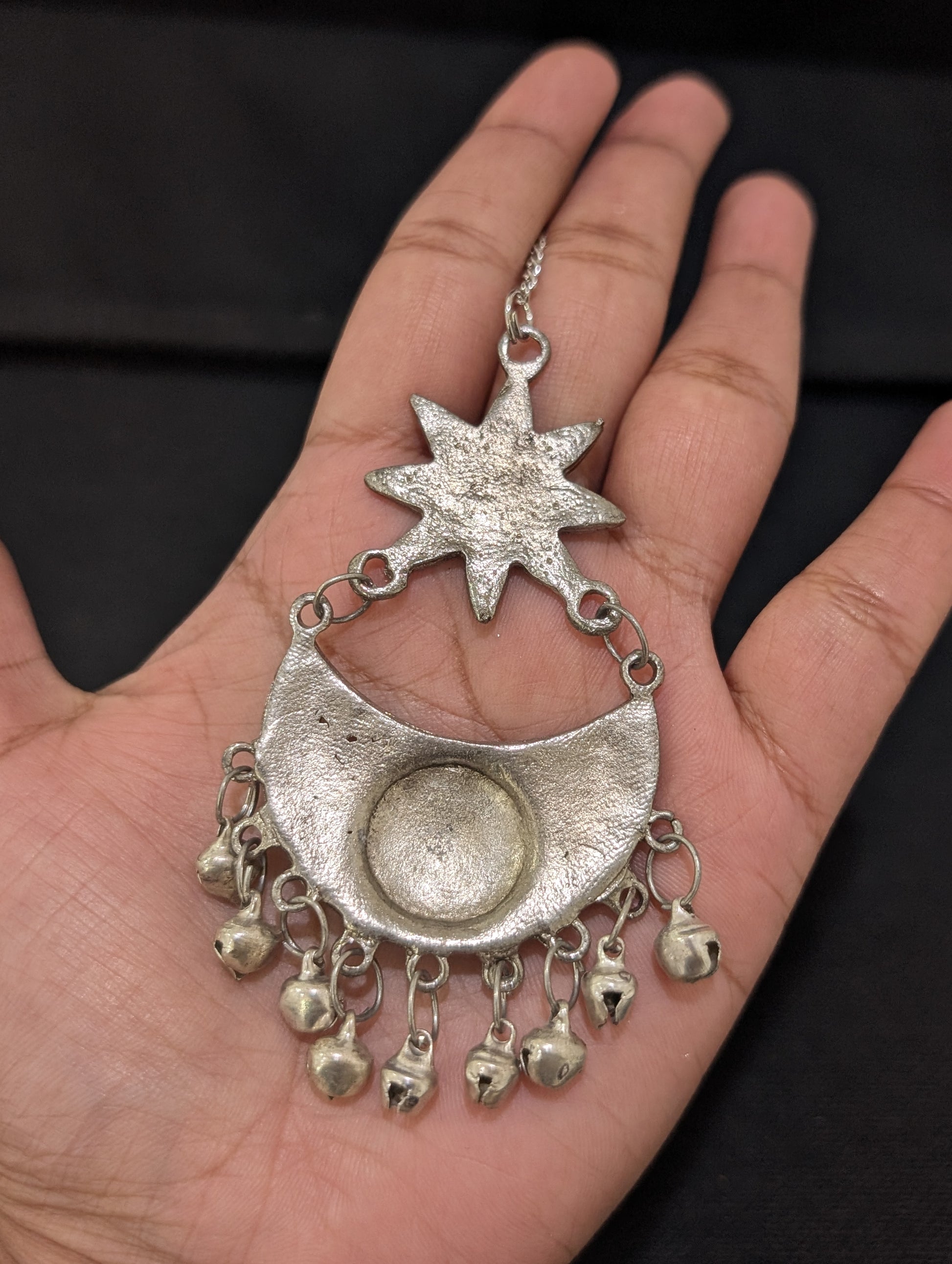 Antique grayish silver finish Large Flower Chandbali design Maang tikka.