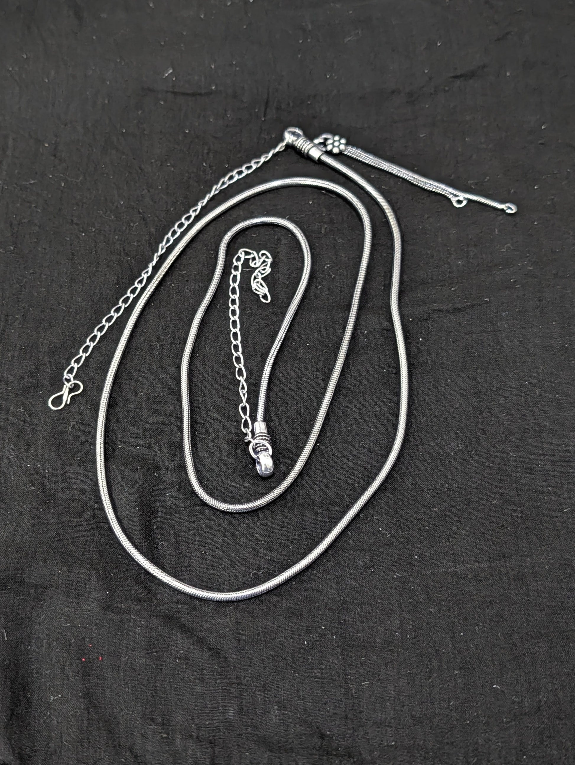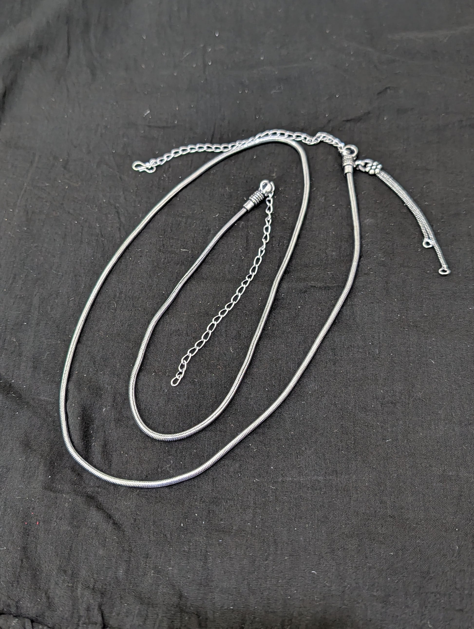 Oxidized silver hip chain.