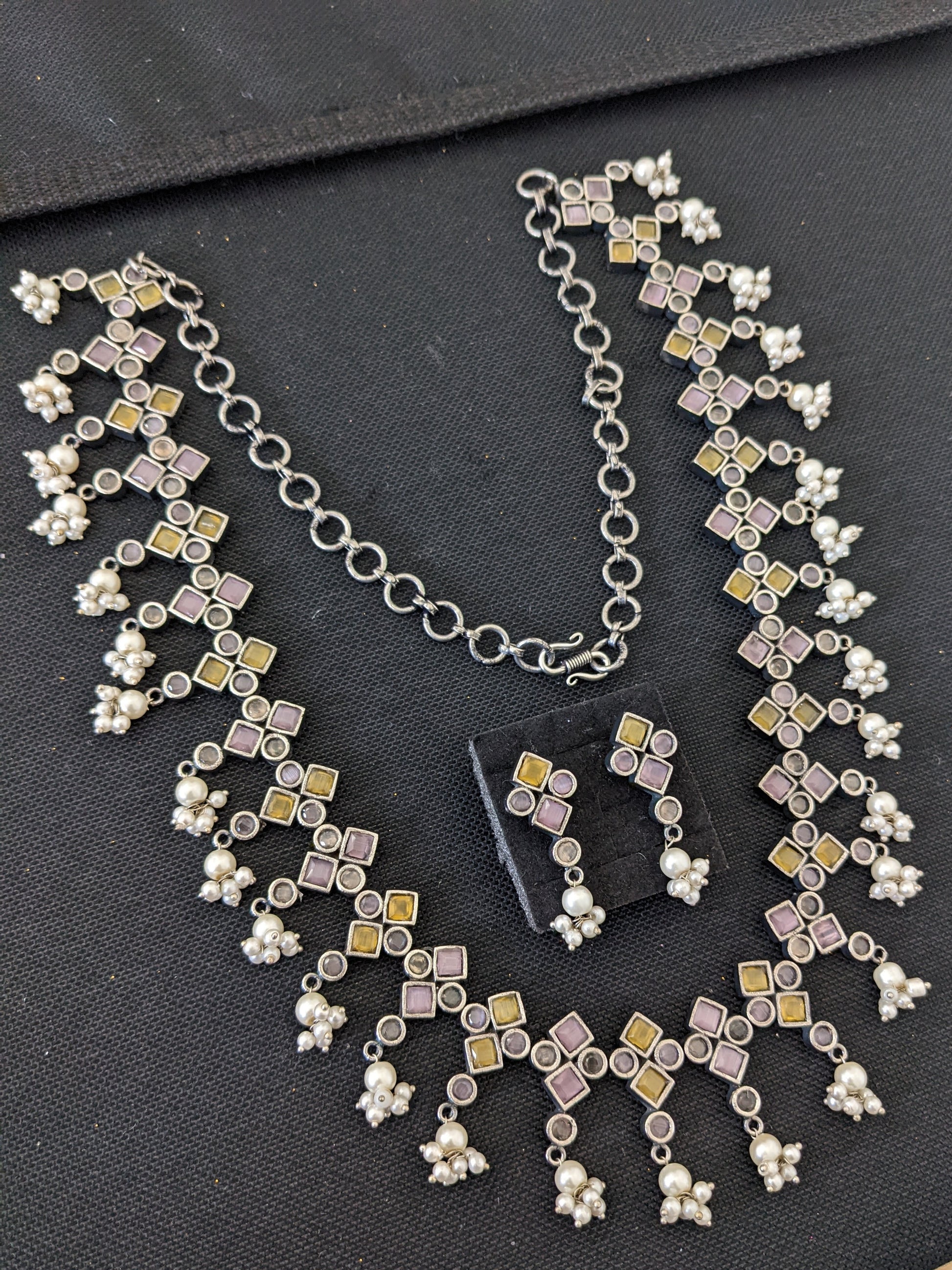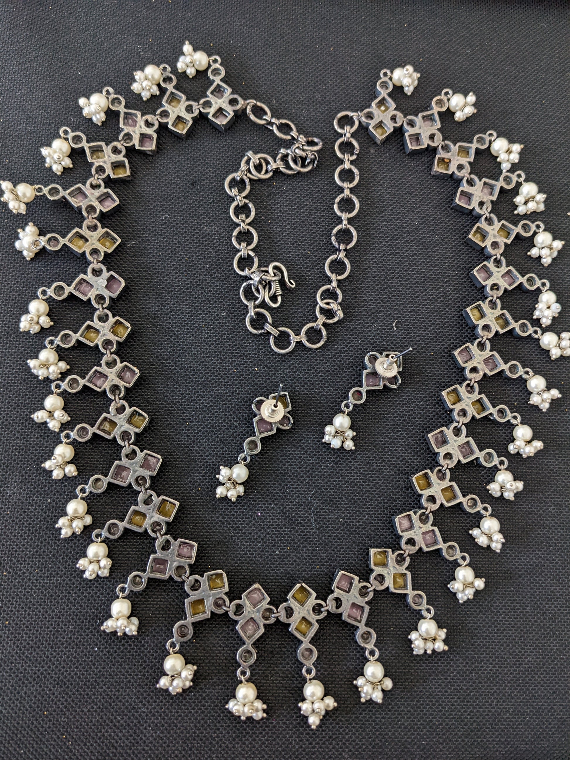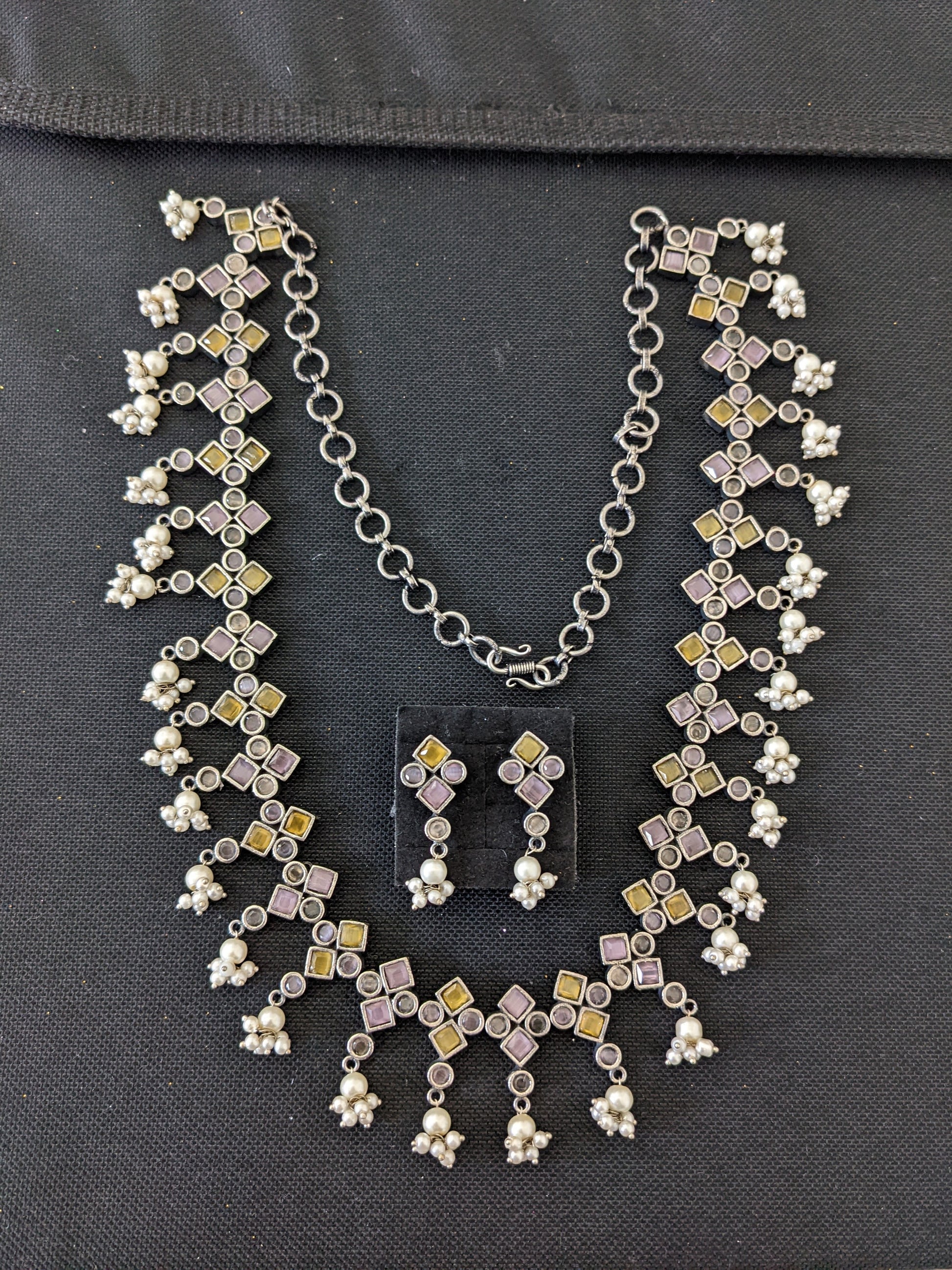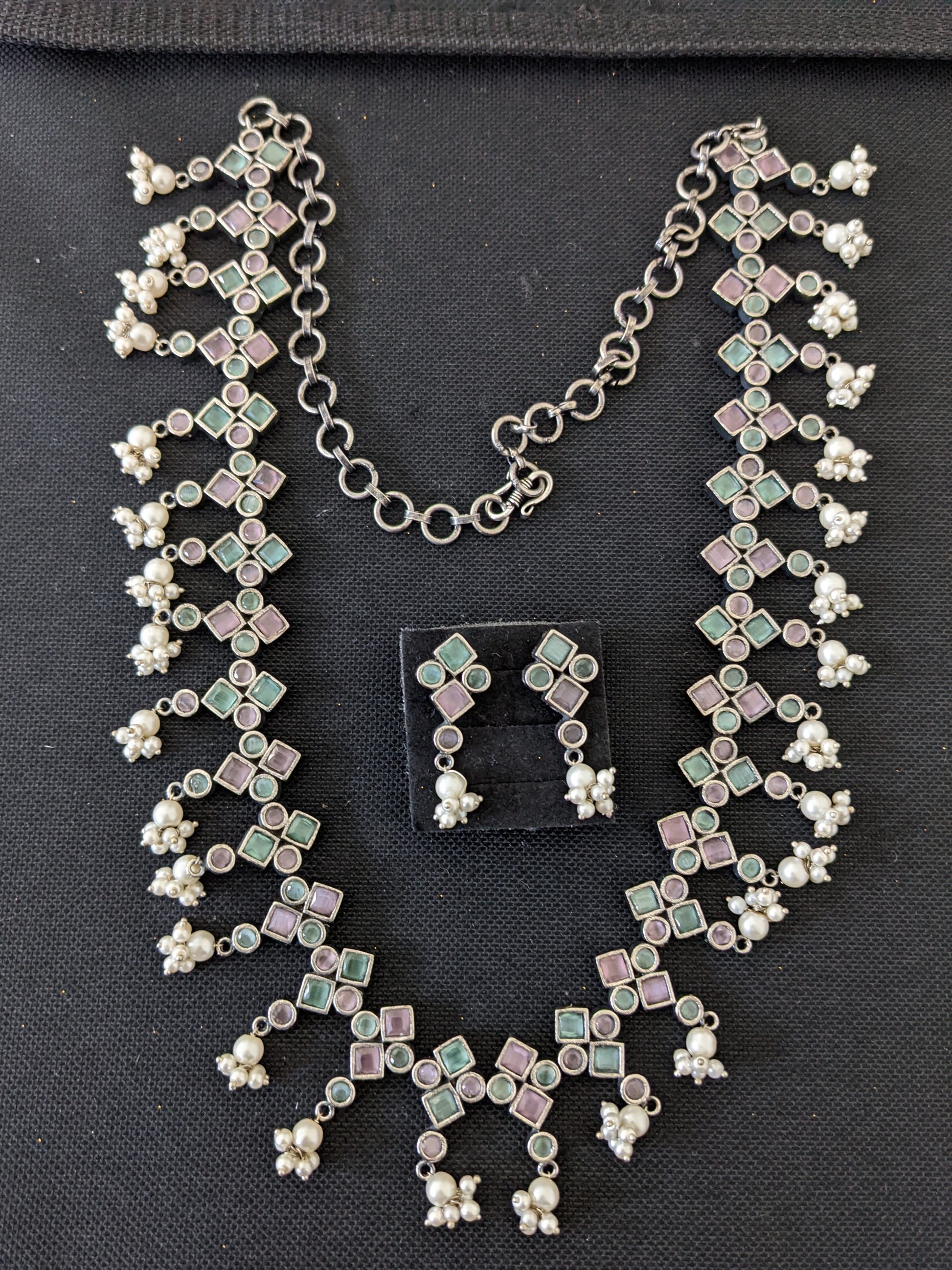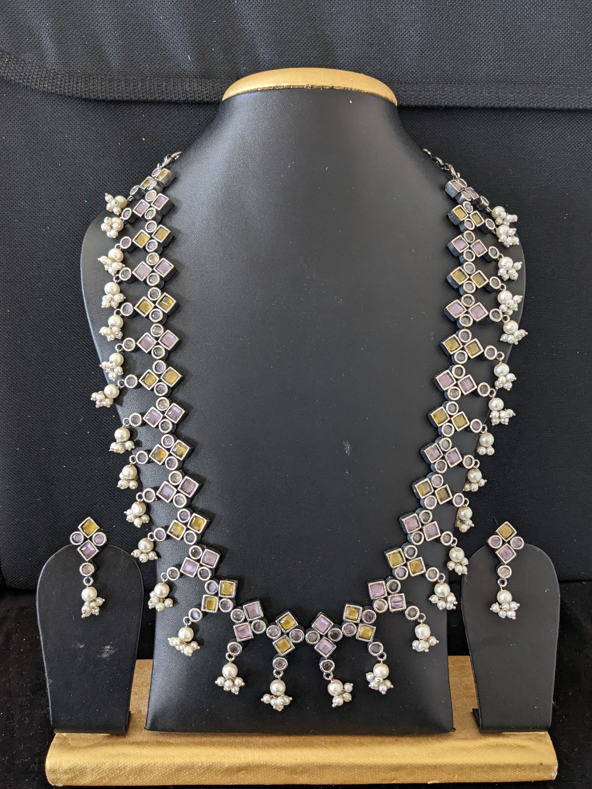 Pastel color CZ stone Guttapusalu Long haram and earrings set