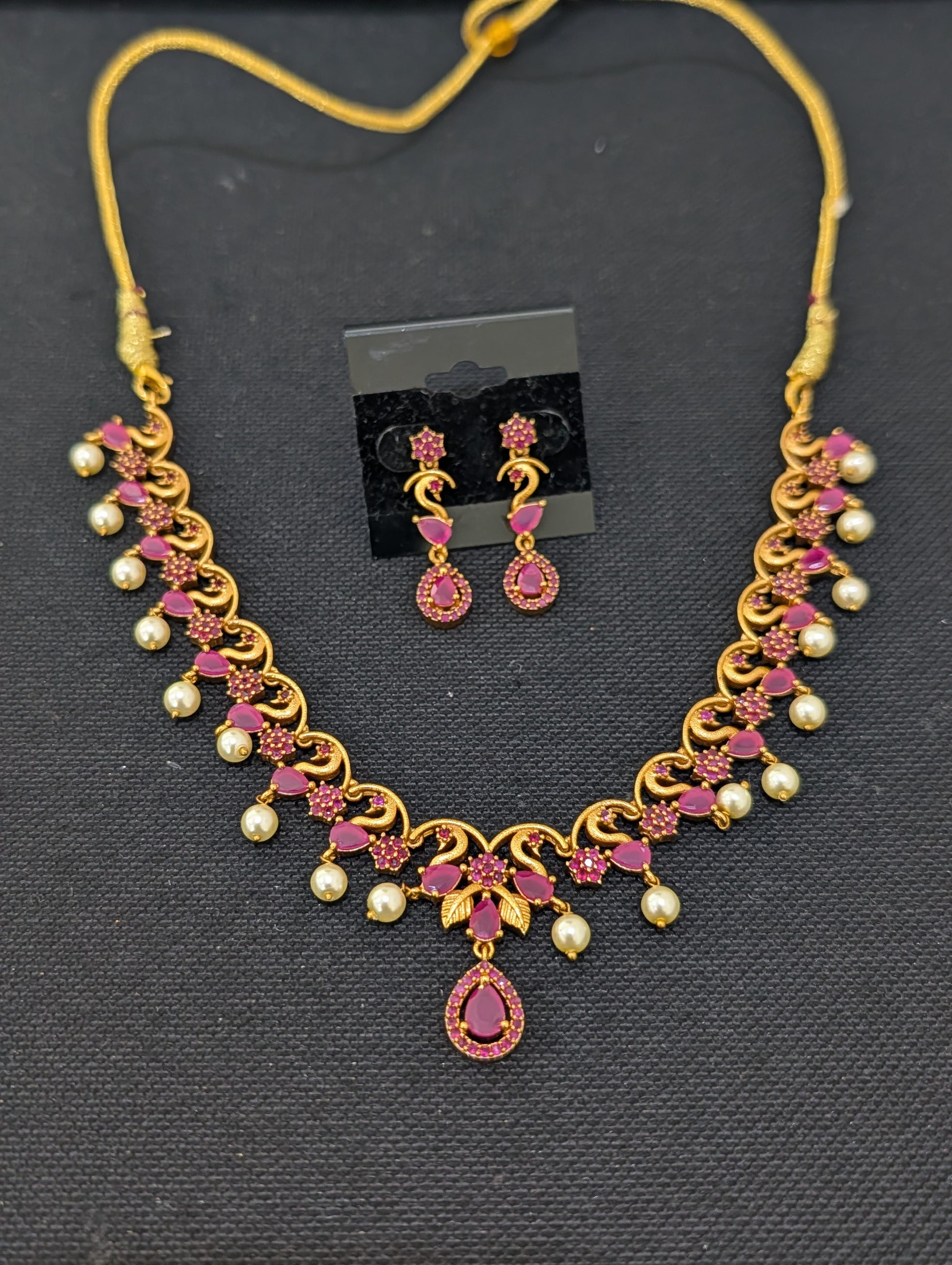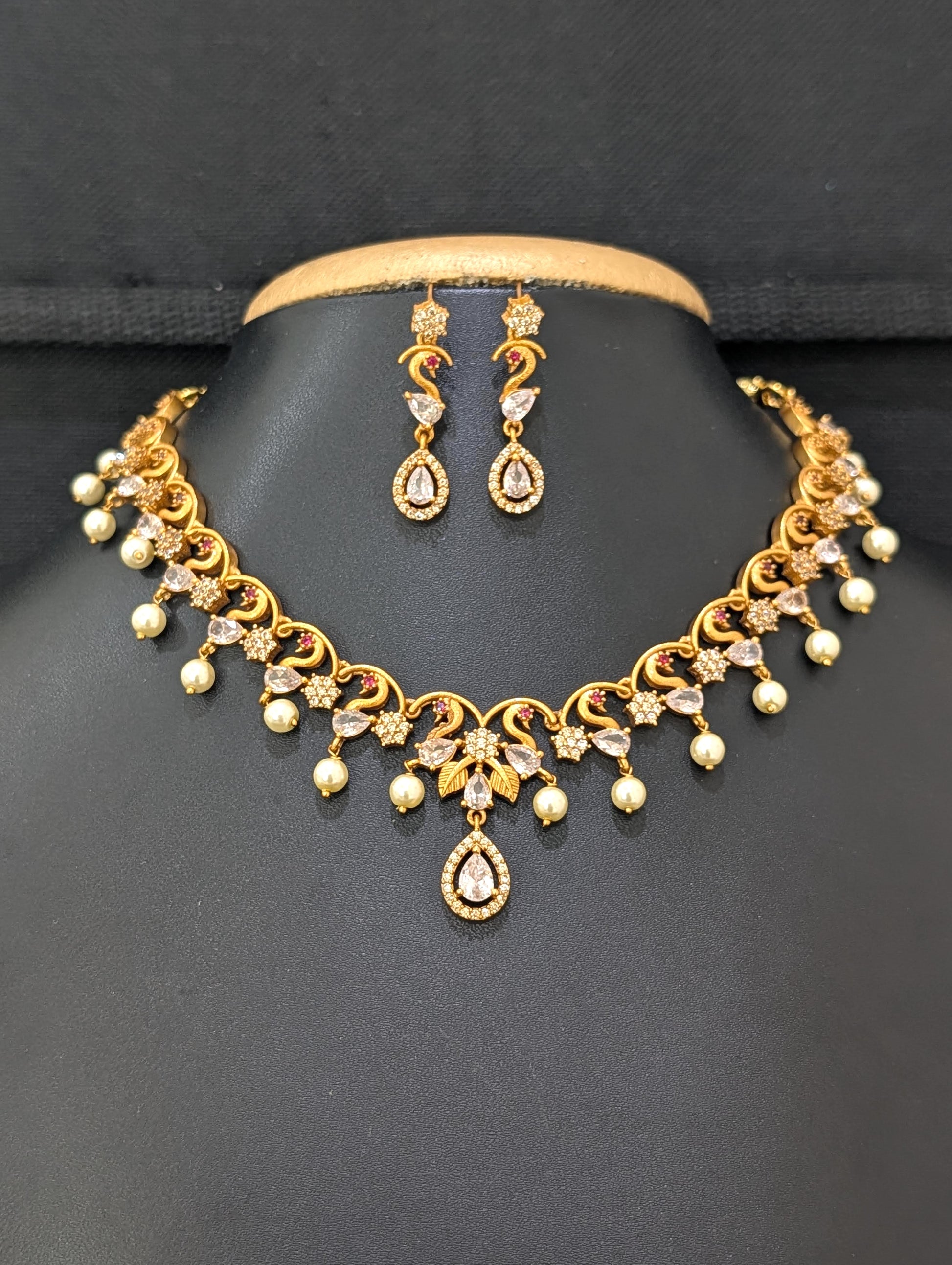 Shiny Antique orange gold plated CZ /AD stone choker necklace and Earring set.