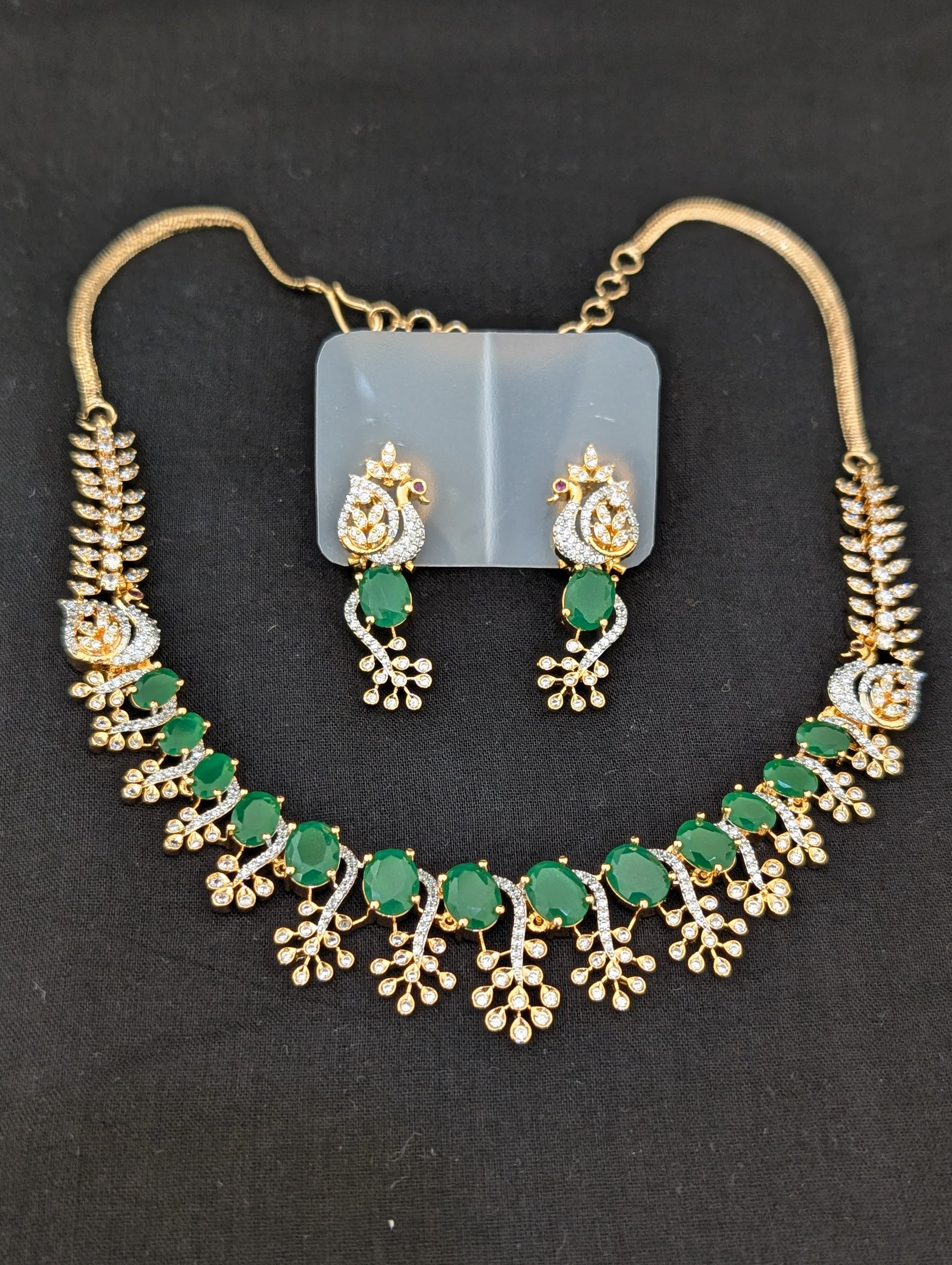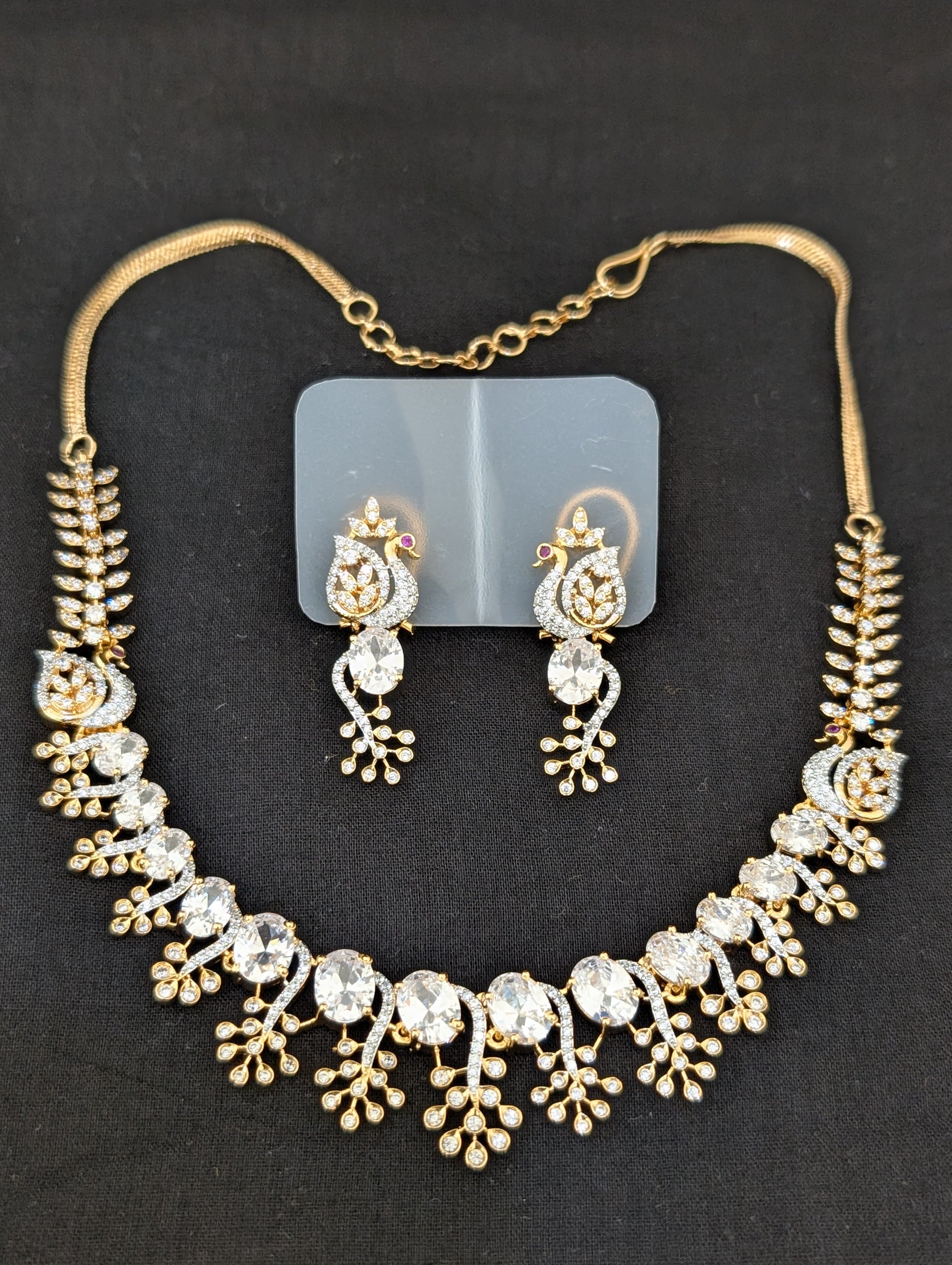 Party wear cubic zirconia CZ stone embedded necklace set.