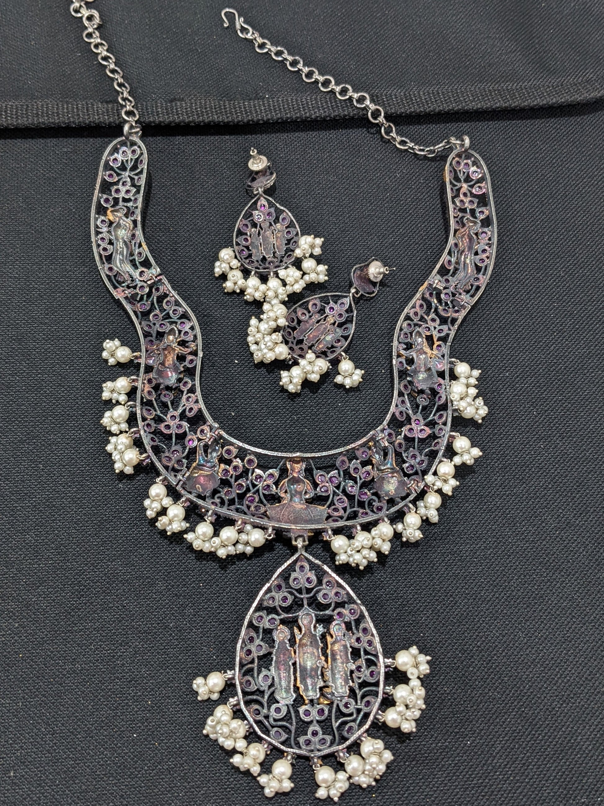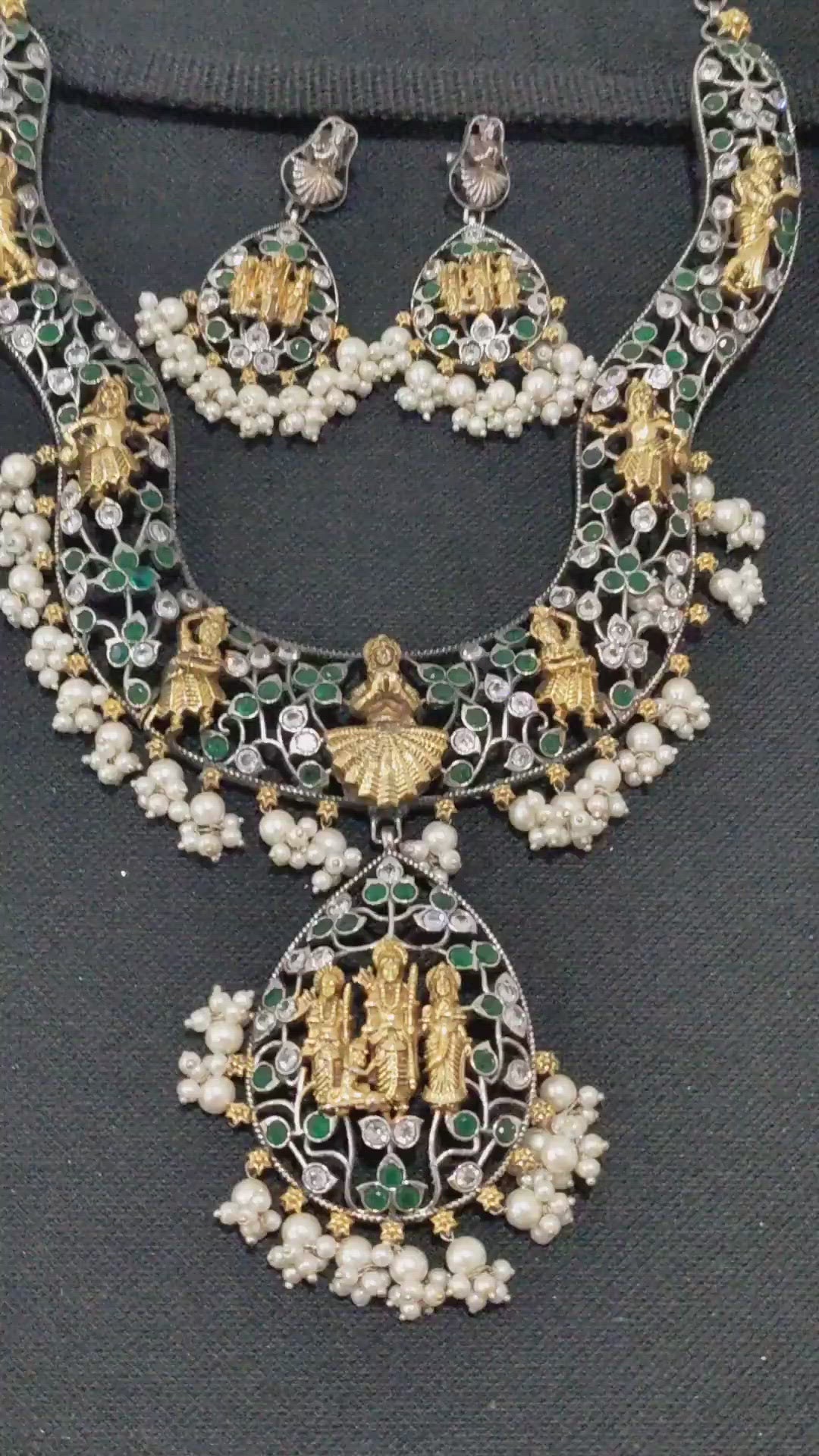 CZ stone pasted pearl cluster dangle Traditional Ram Parivaar design Set.