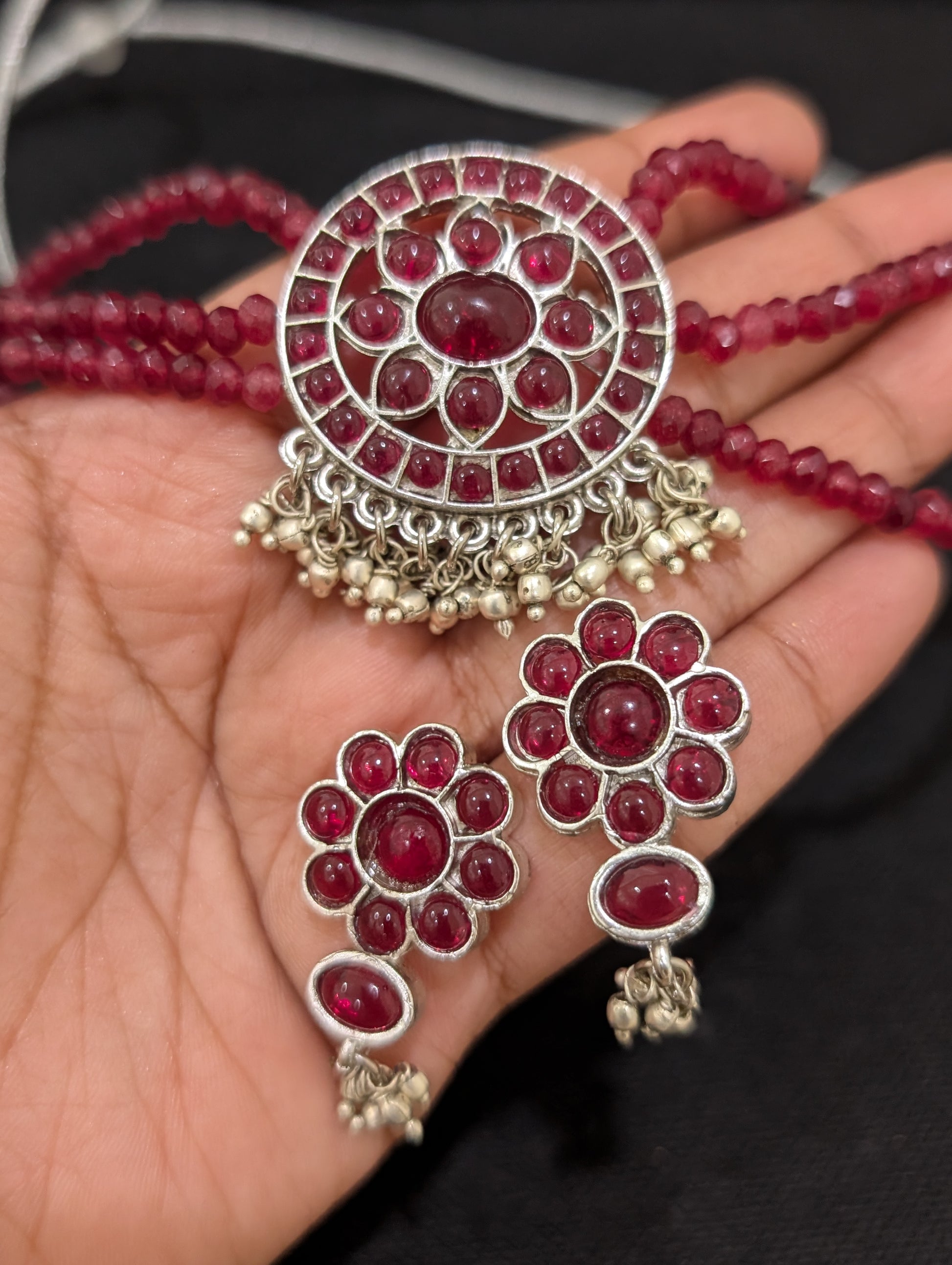 Ruby Kemp stone Crystal bead necklace and earrings set
