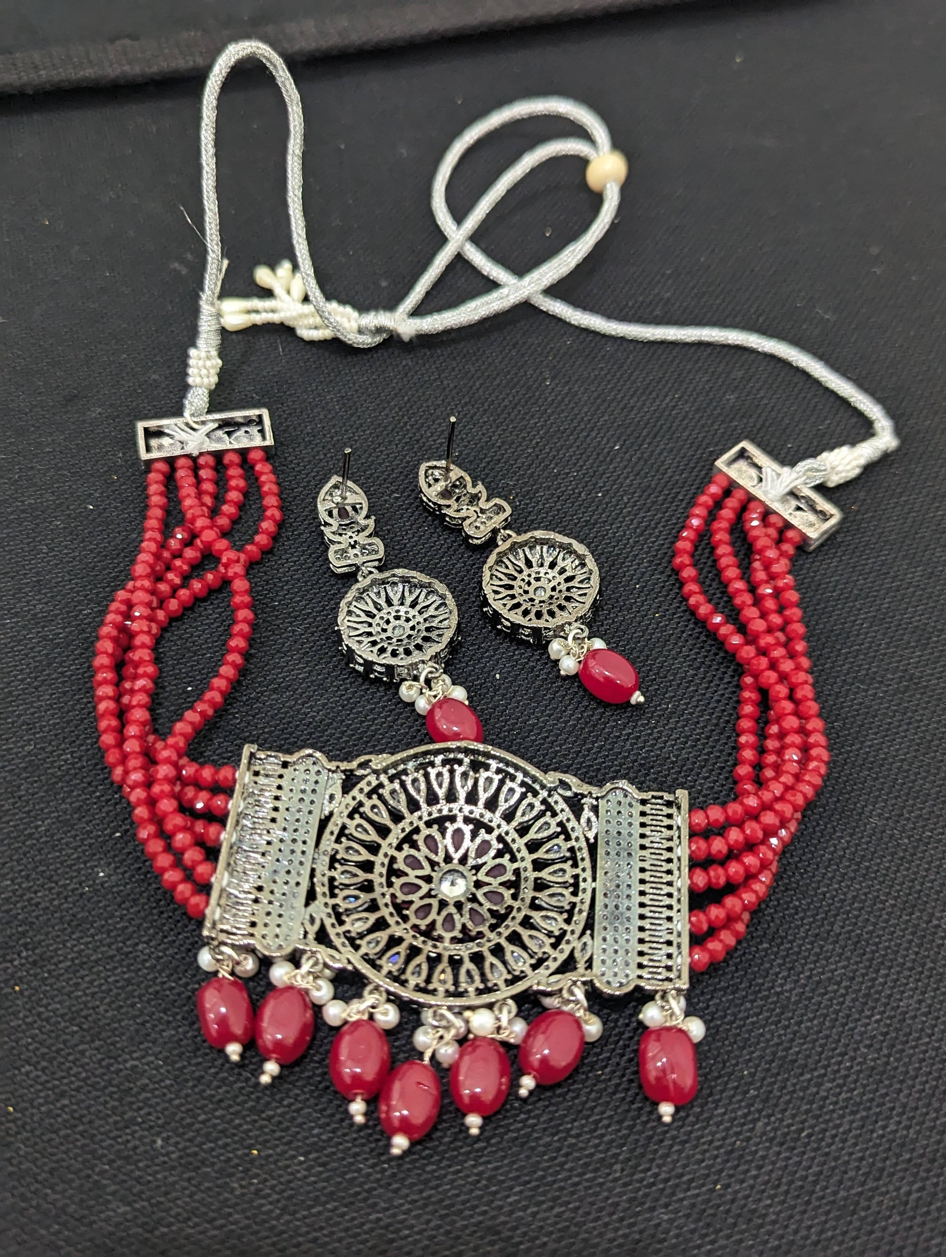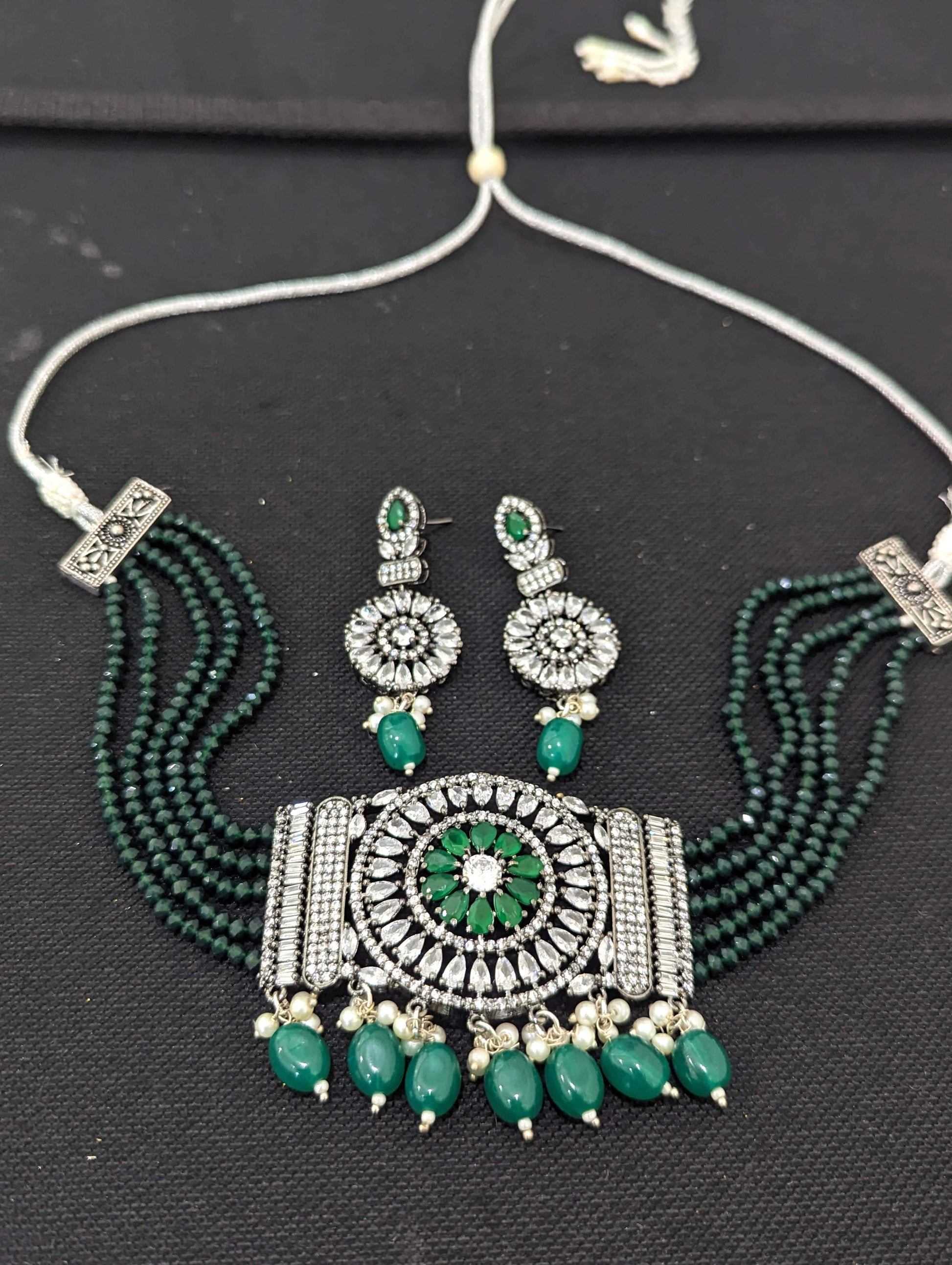 Necklace comes with adjustable silver jari cord.