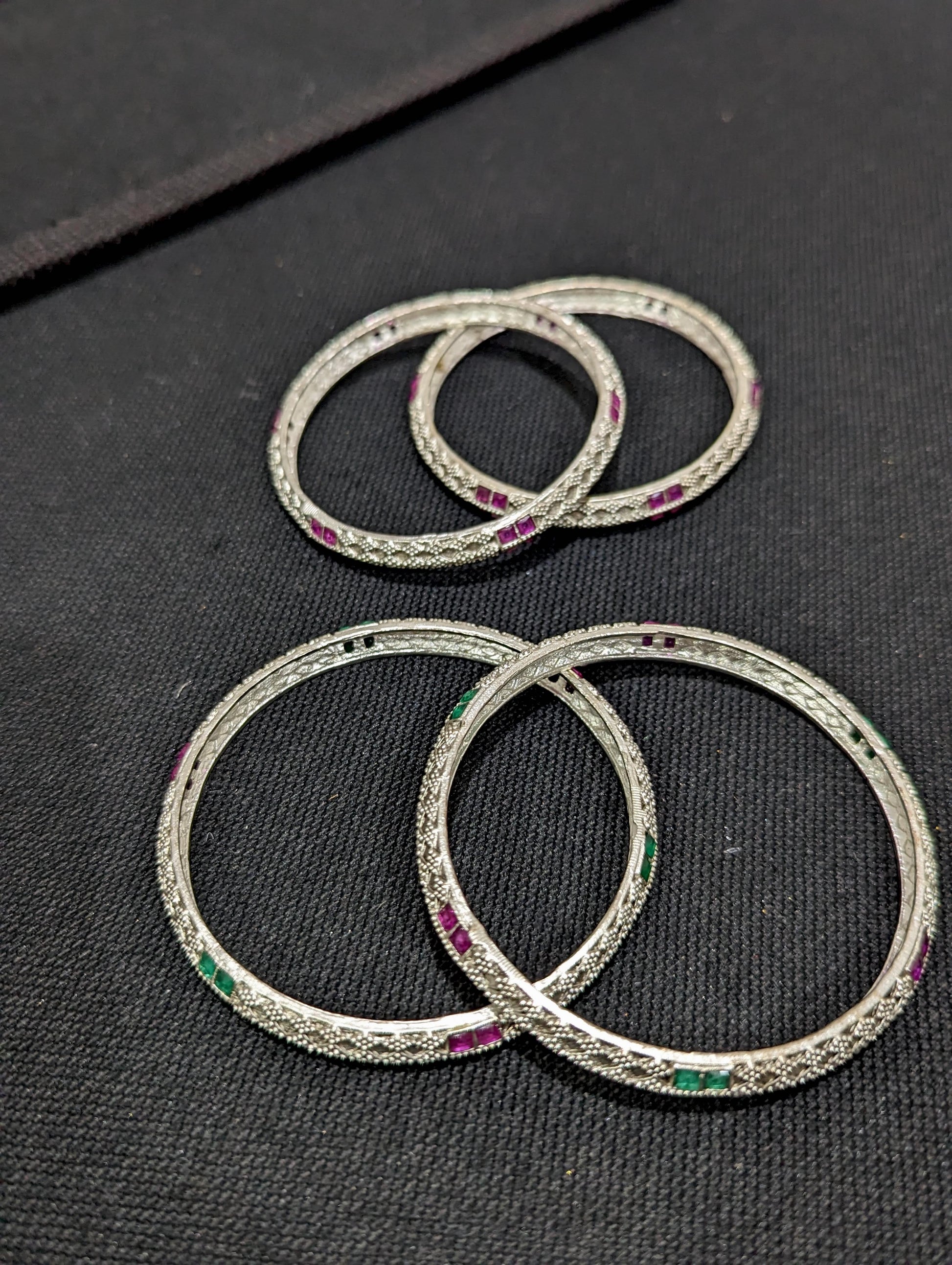 Bright Oxidized Silver CZ stone diamond design bangles