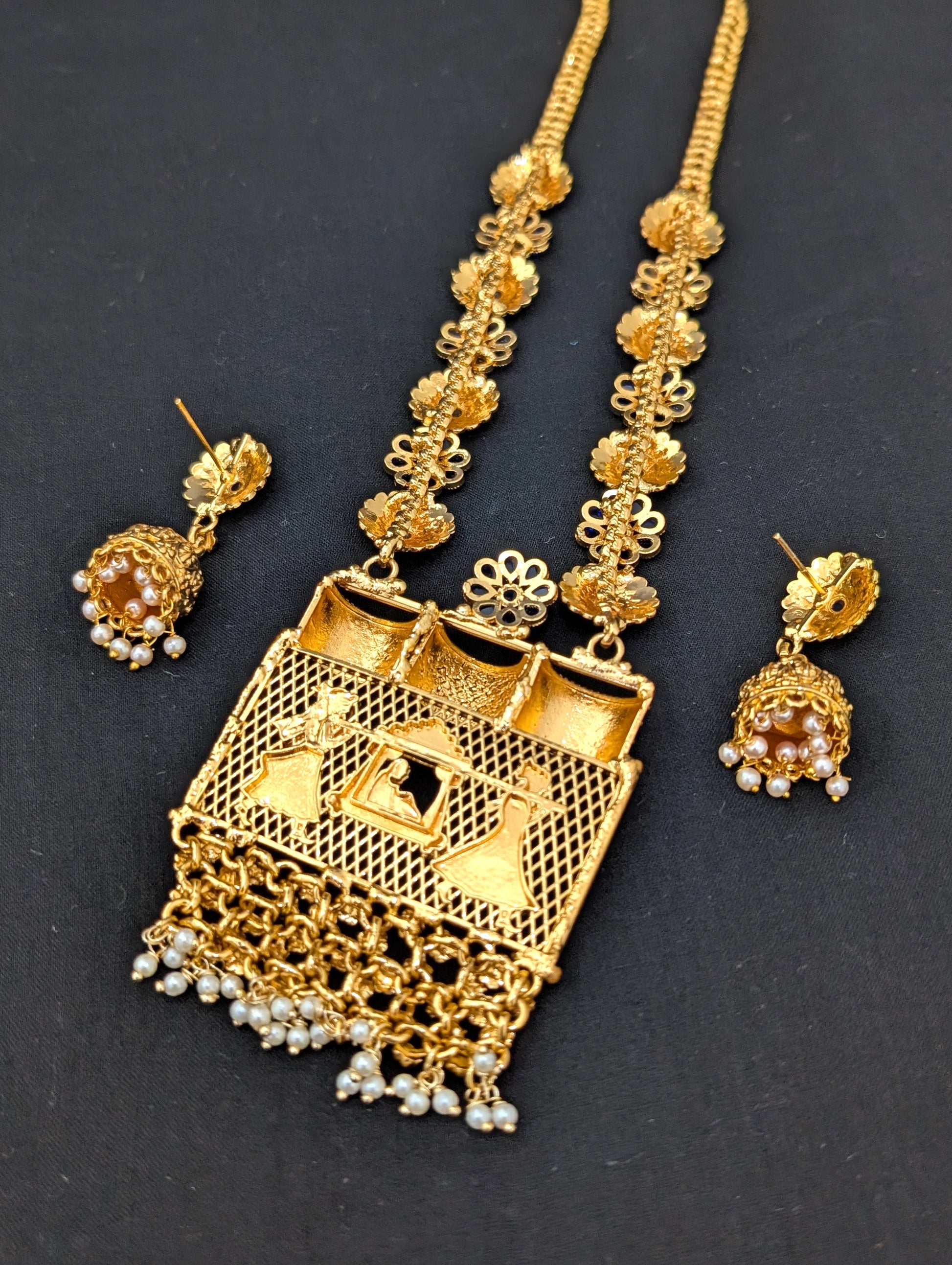 Traditional Long Chain necklace and jhumka earrings set .