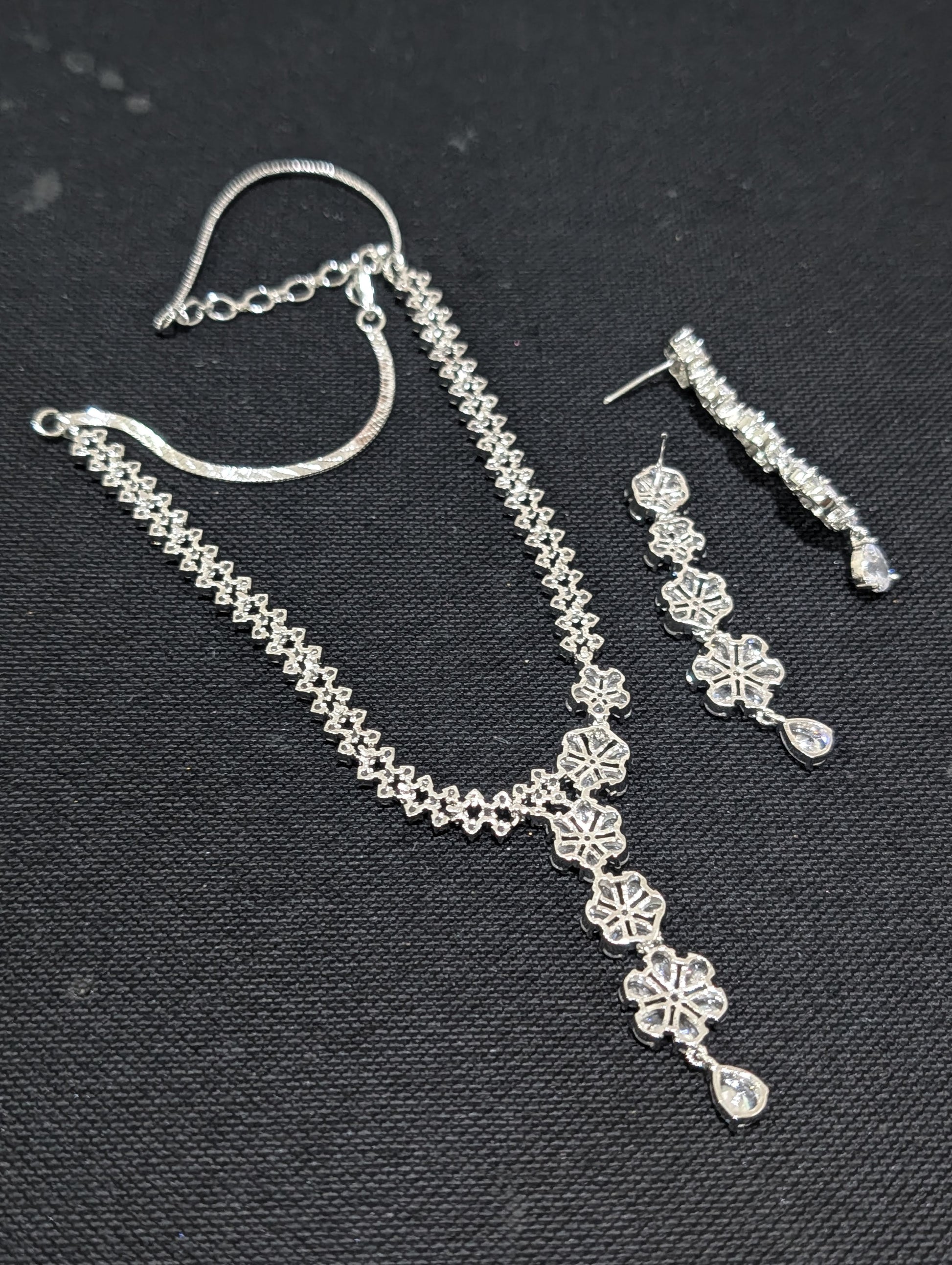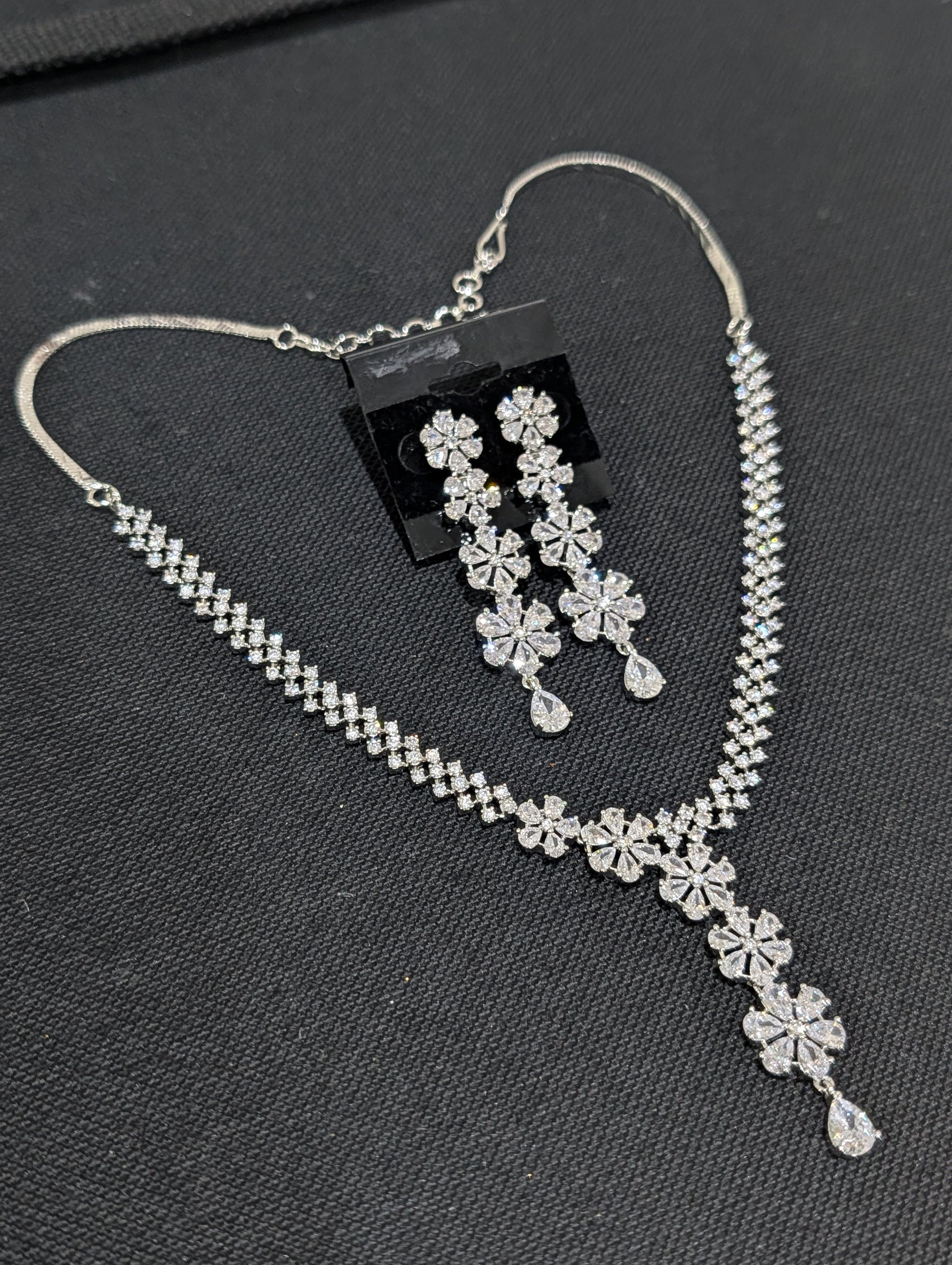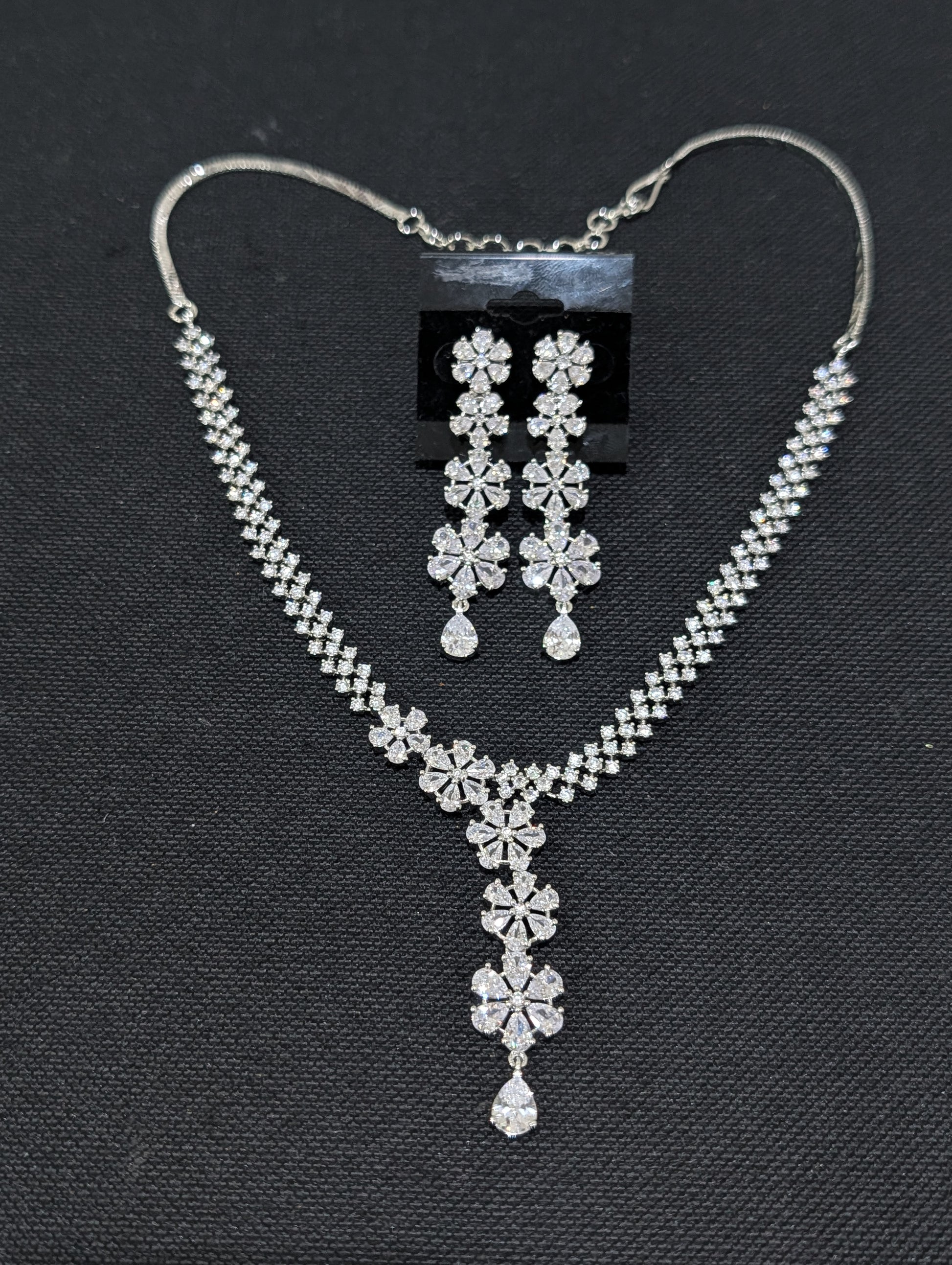 White gold plated Unique CZ Necklace and Earrings set