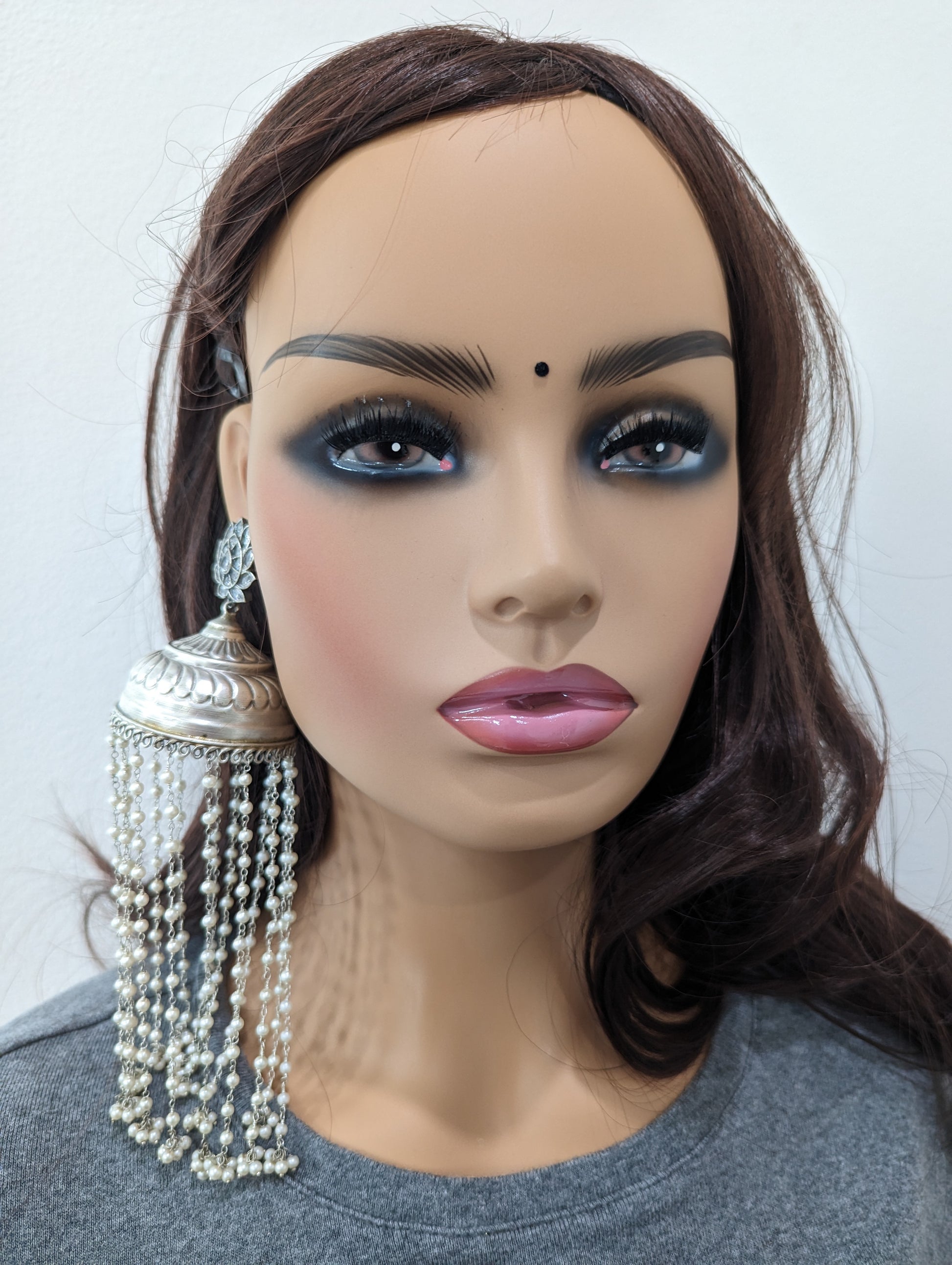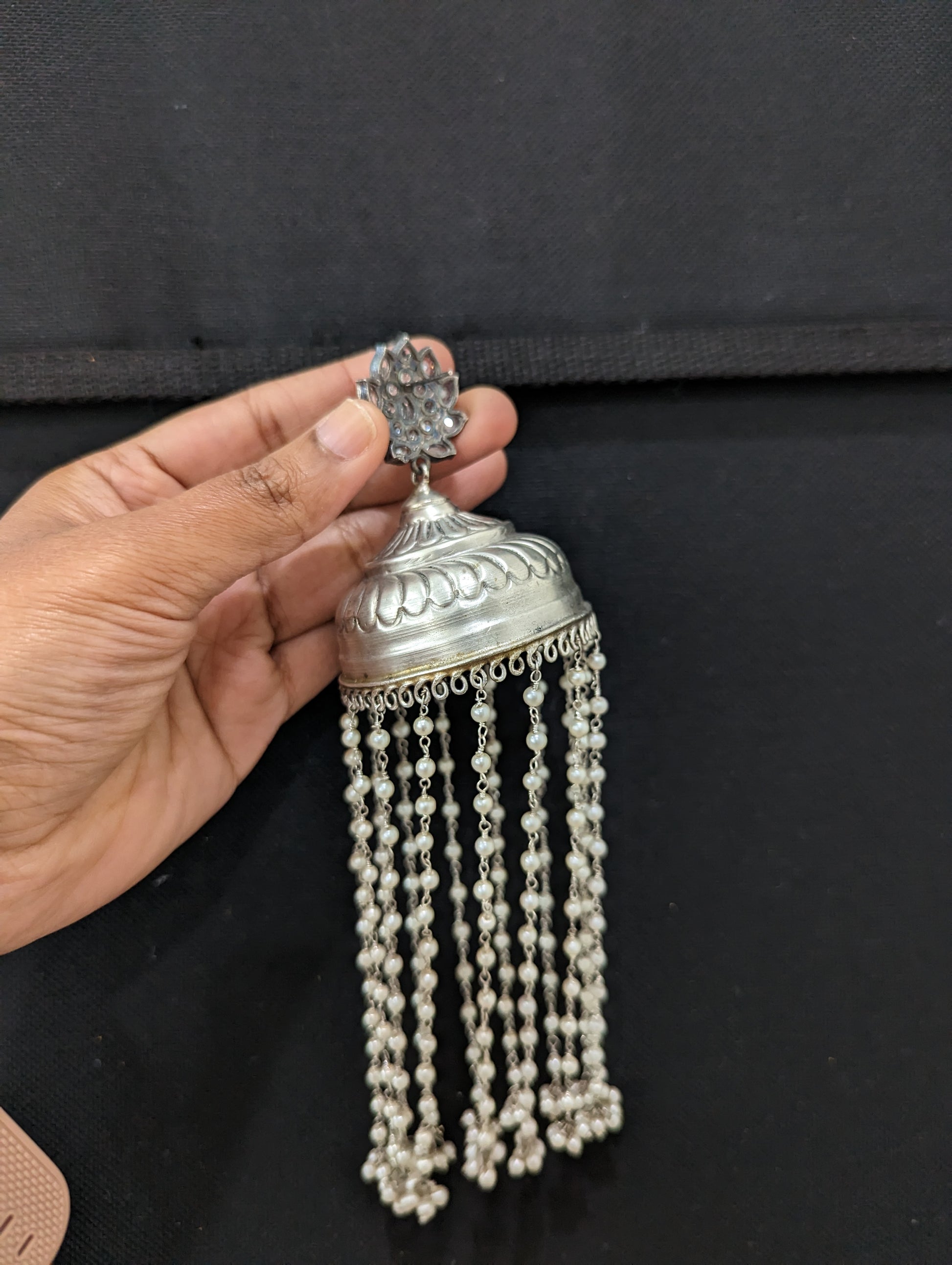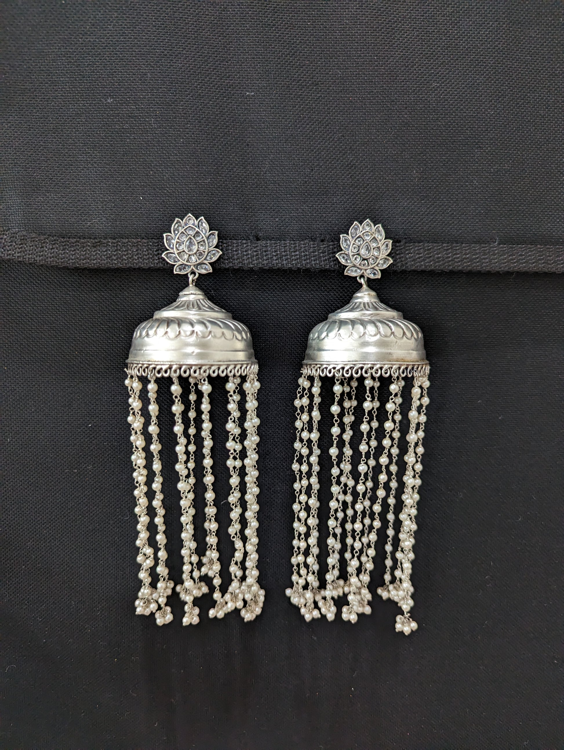 Pearl tassel bead dangle exclusive jhumka earrings.