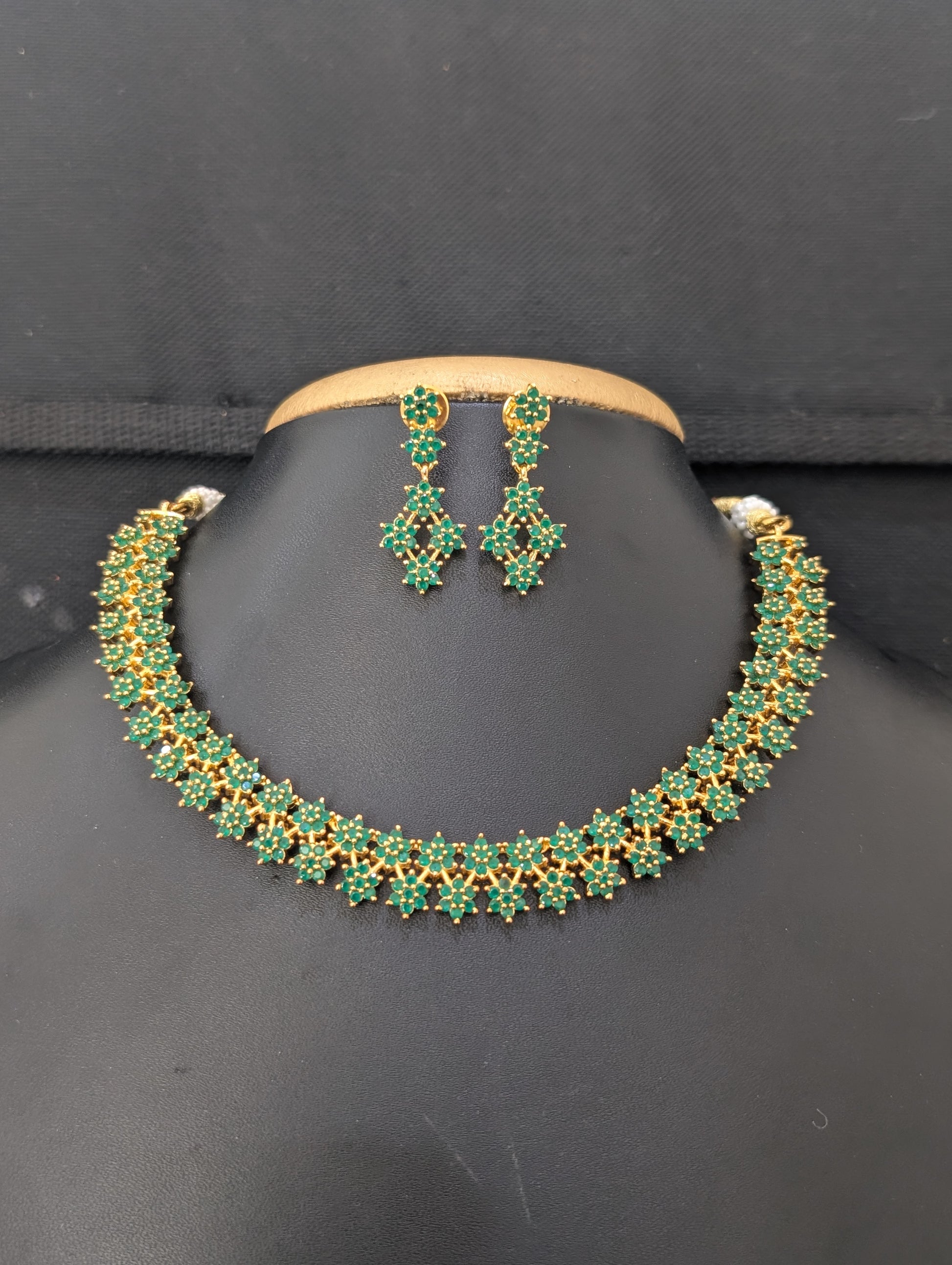 One gram gold plated CZ /AD stone choker necklace and Earring set.